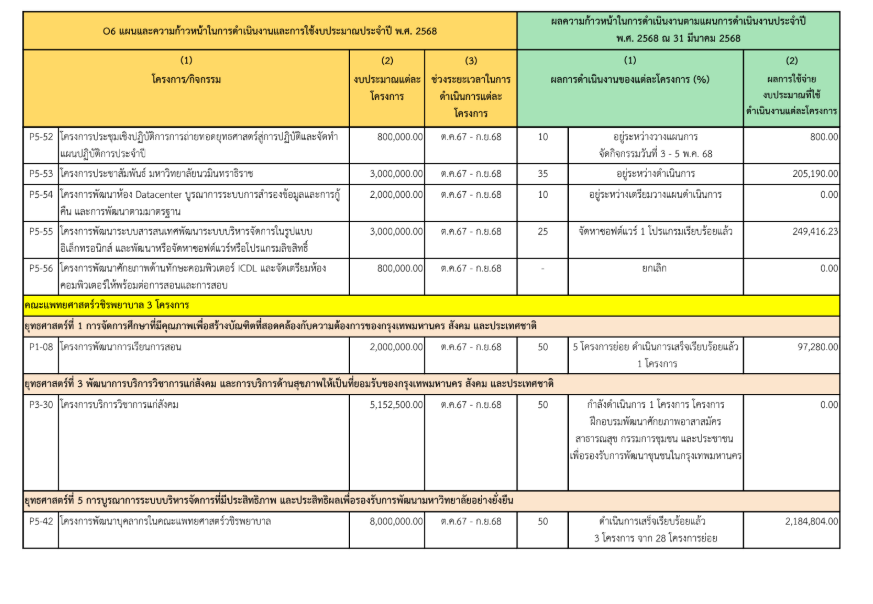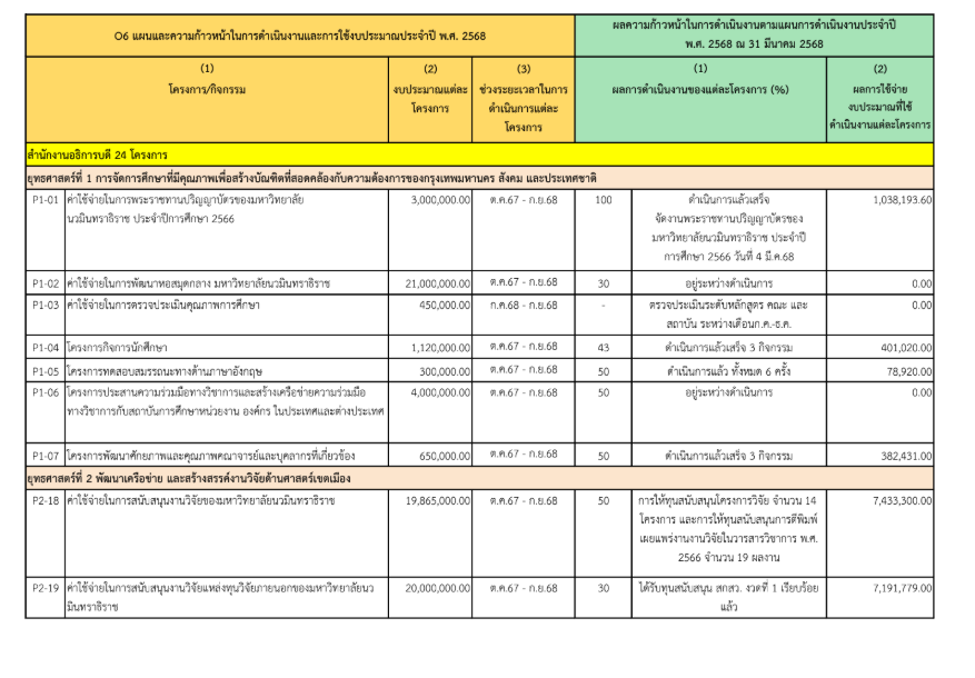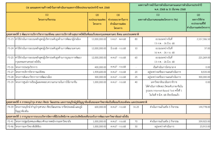 แผนและความก้าวหน้าในการดําเนินงานและการใช้จ่าย ประจําปี 2568