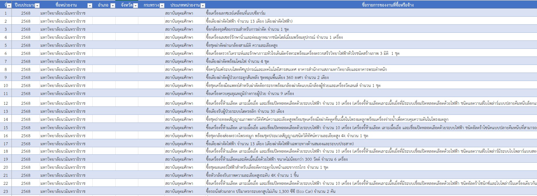 รายการและความก้าวหน้าการจัดซื้อจ้างหรือการจัดหาพัสดุ ปีพ.ศ. 2568