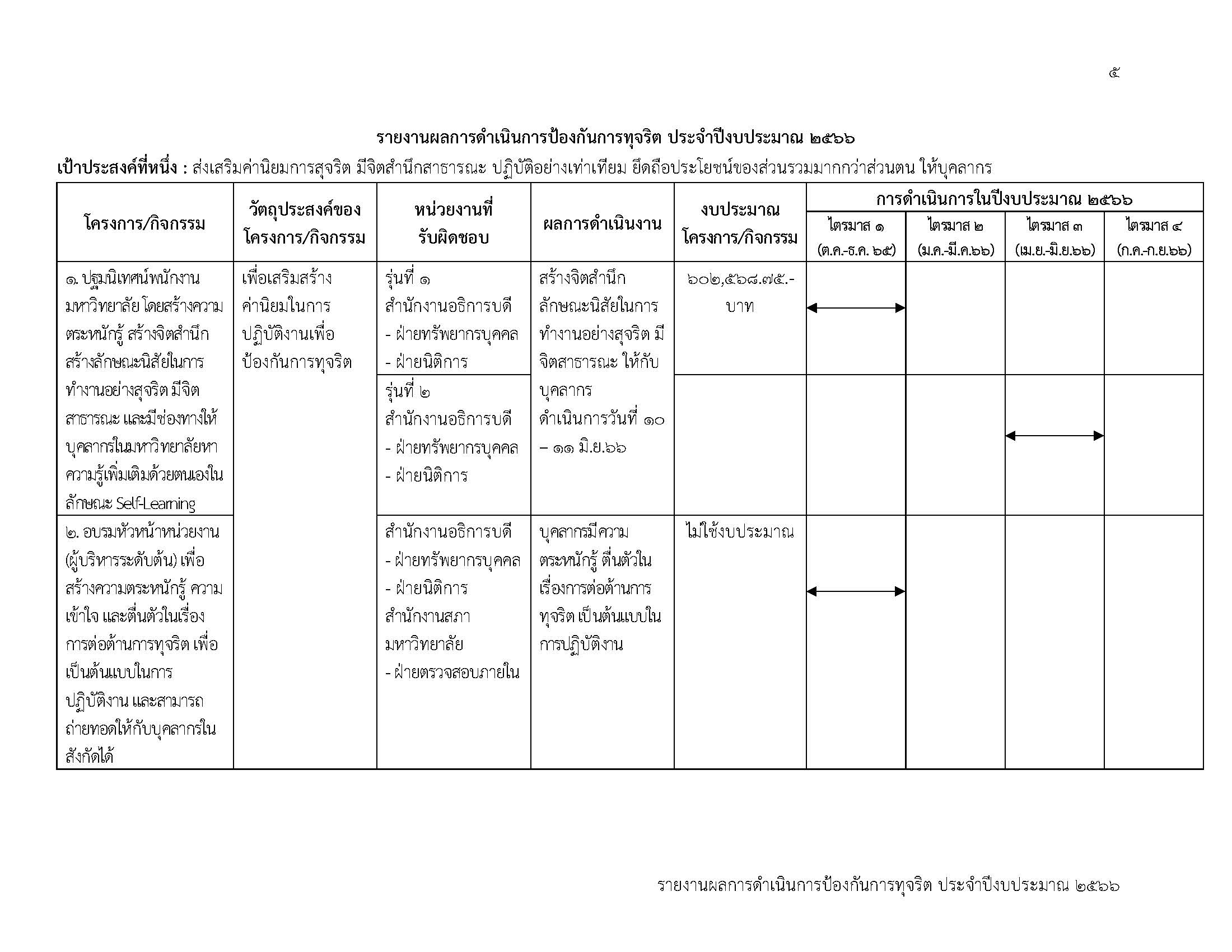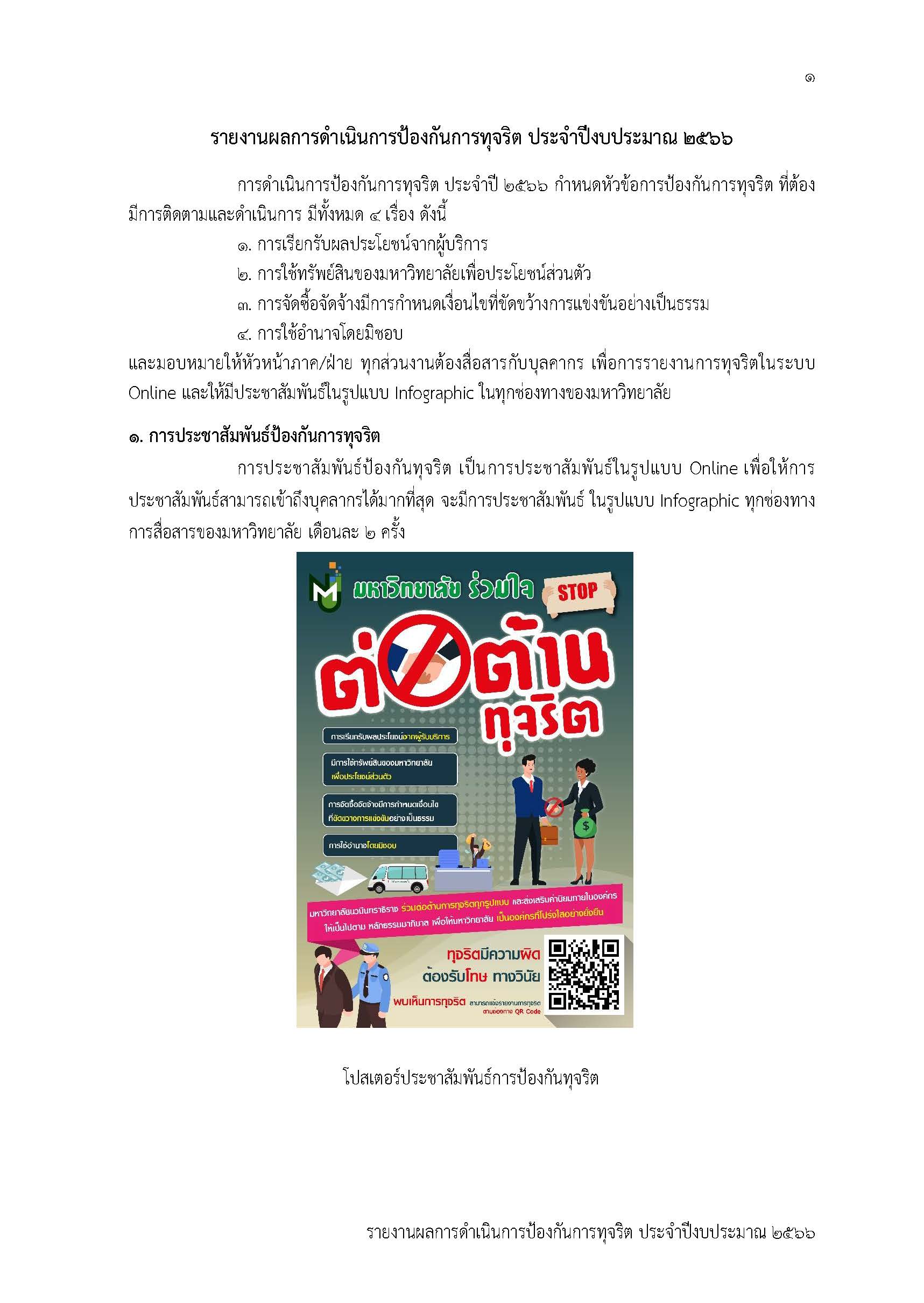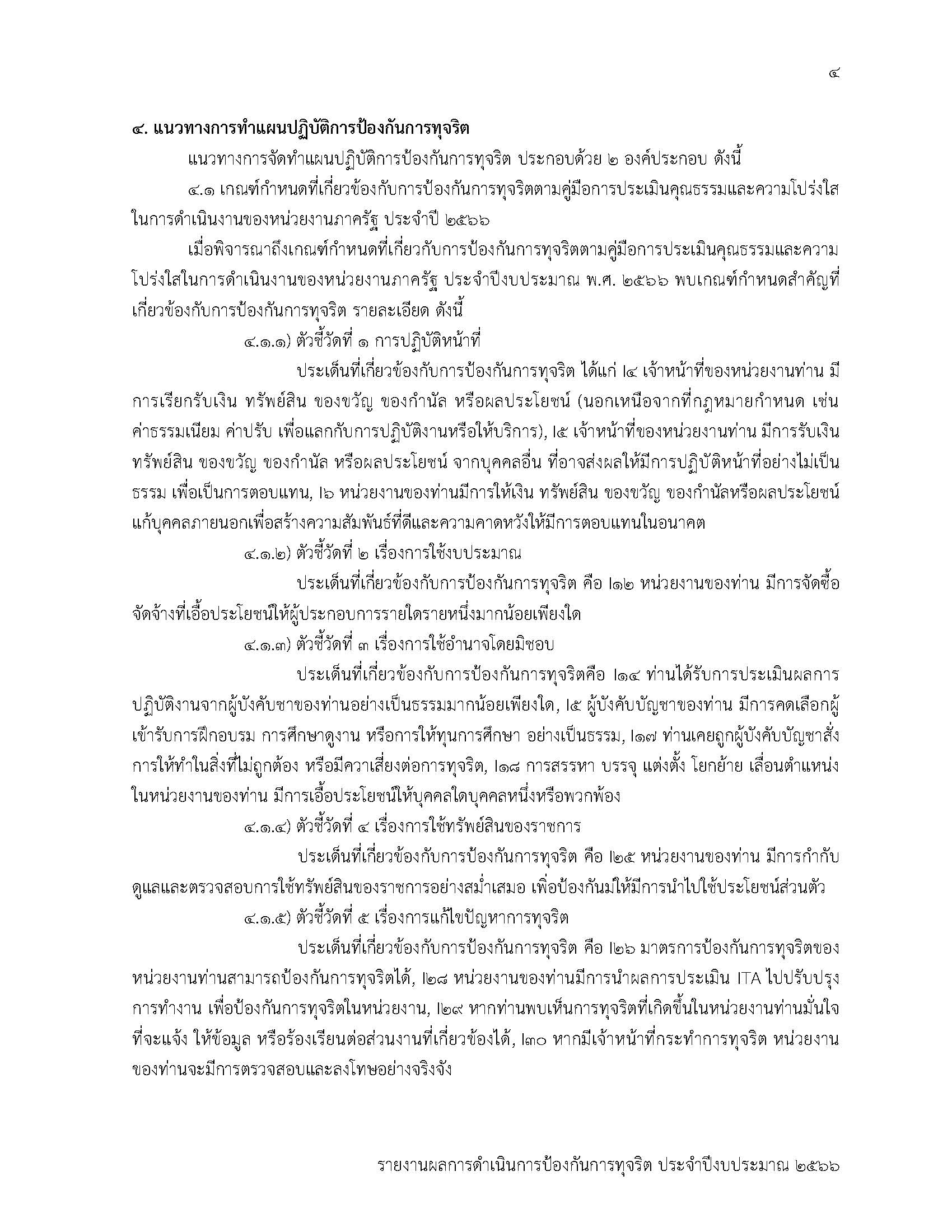 รายงานผลการดำเนินการป้องกันการทุจริตประจำปีงบประมาณ 2566