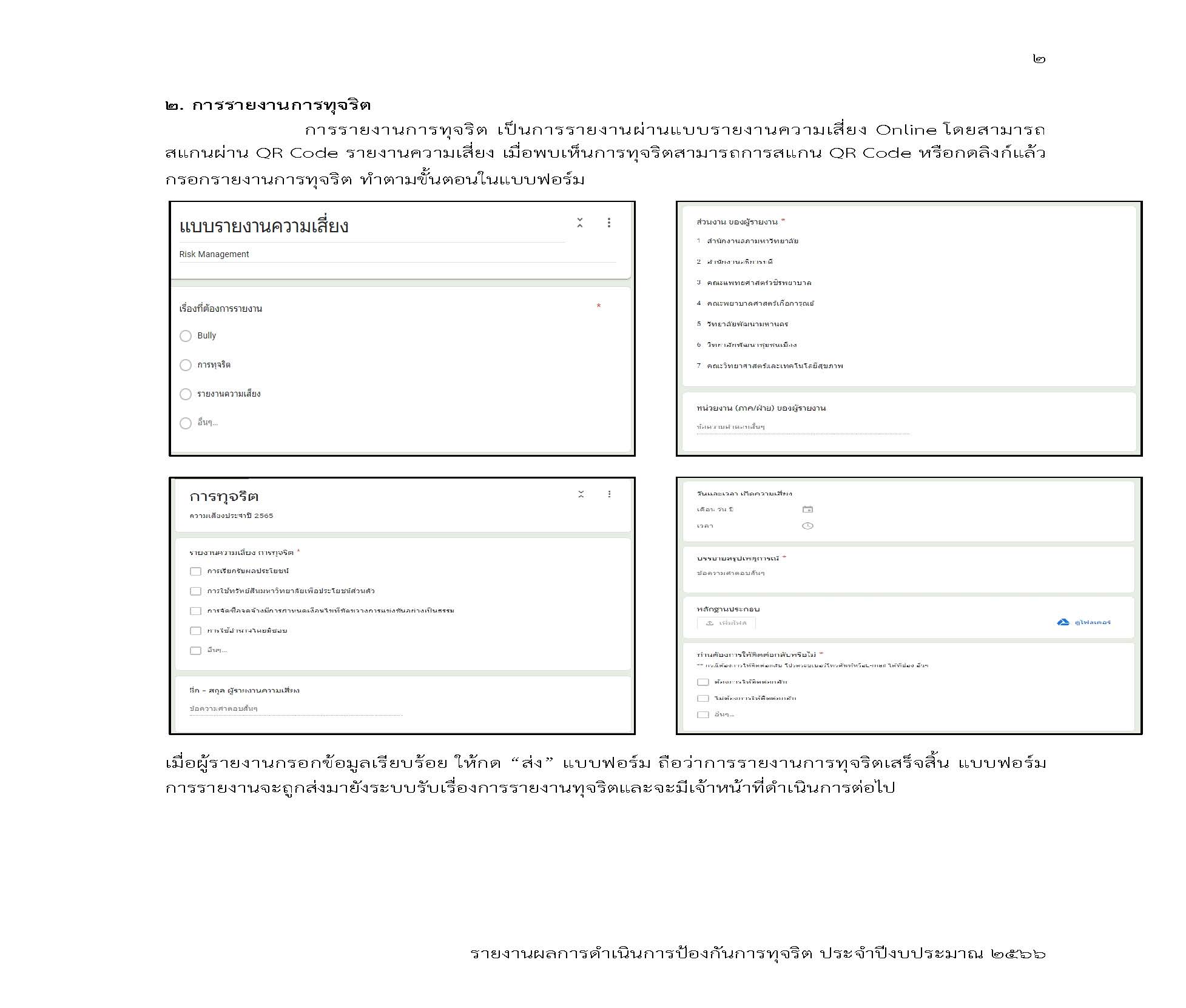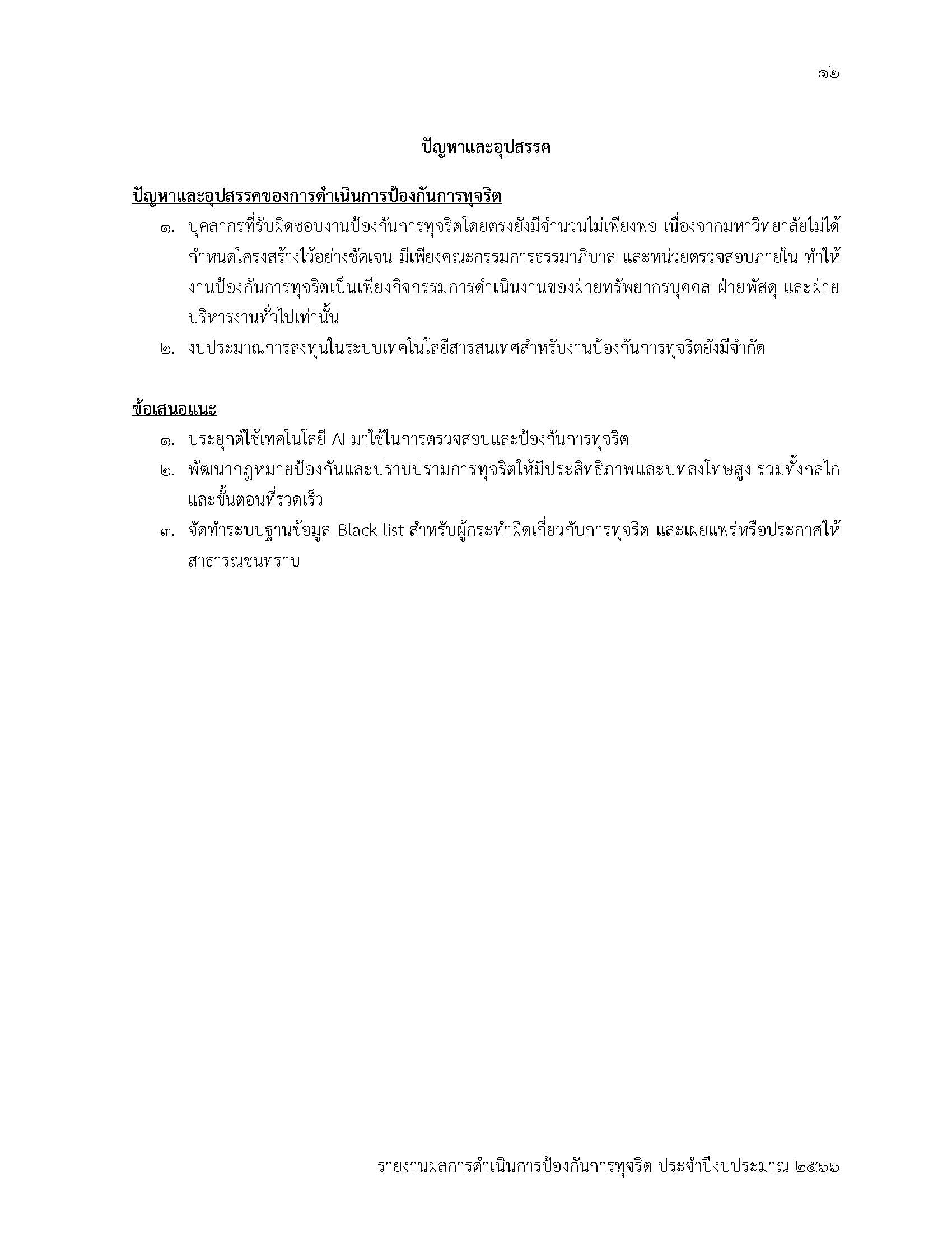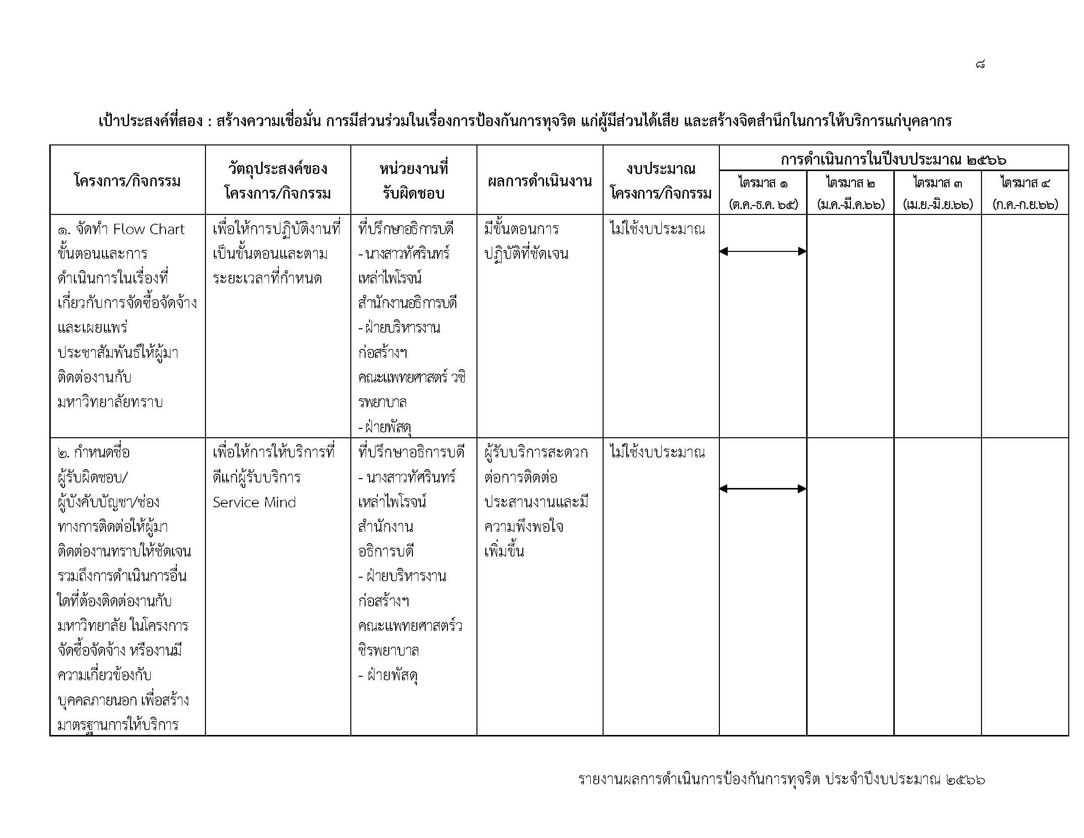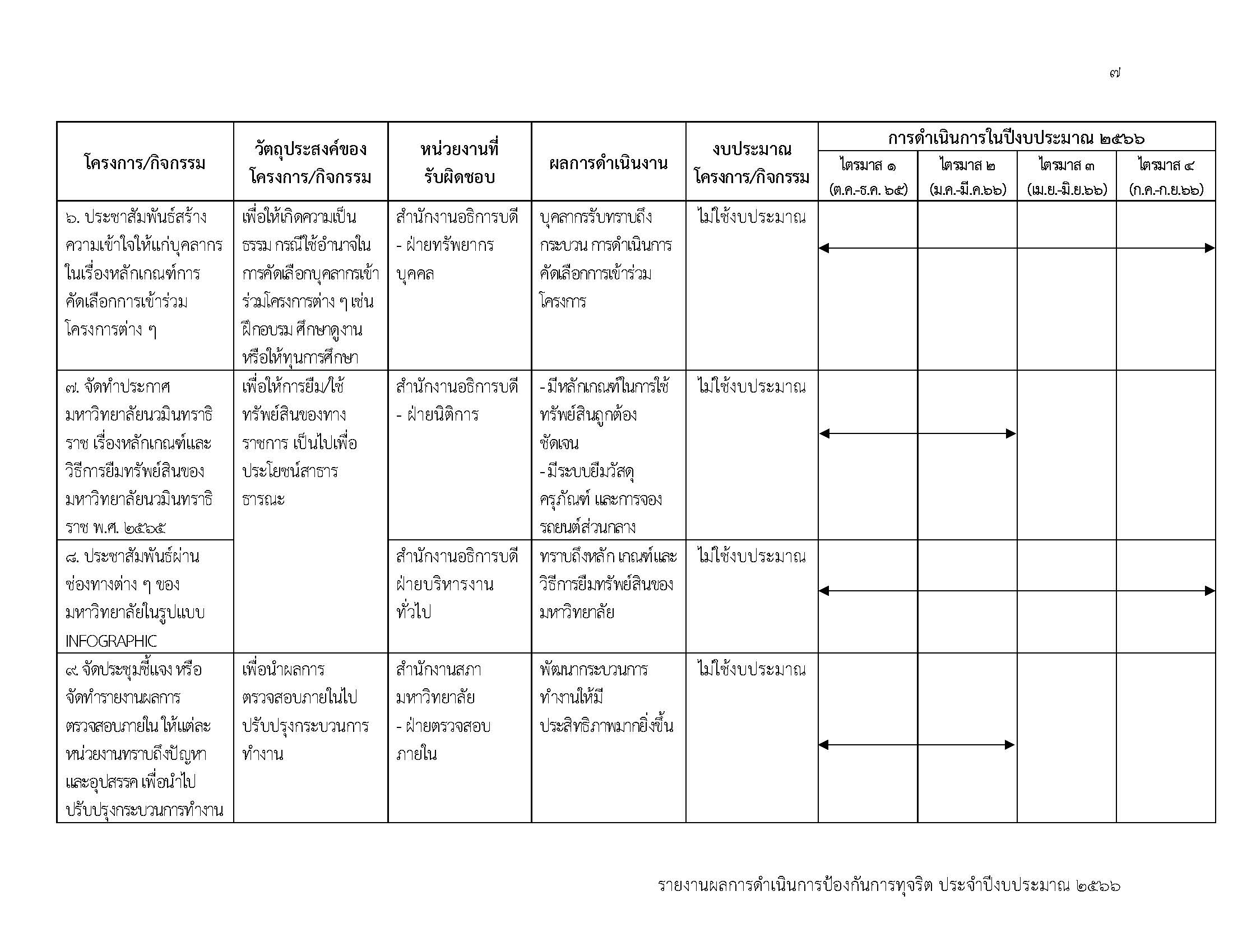 รายงานผลการดำเนินการป้องกันการทุจริตประจำปีงบประมาณ 2566