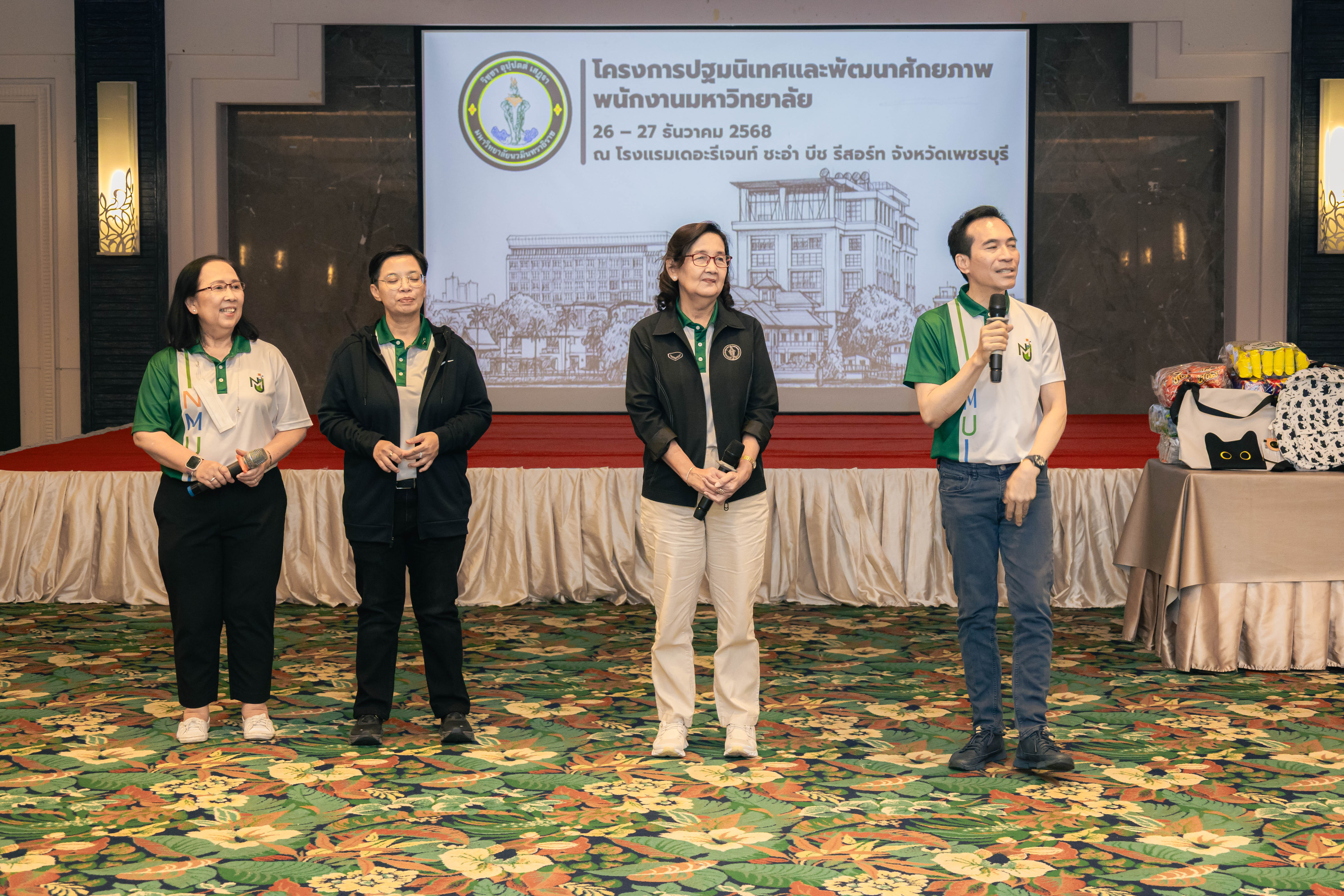 งานประชาสัมพันธ์ มหาวิทยาลัยนวมินทราธิราช โครงการปฐมนิเทศและพัฒนาศักยภาพพนักงานมหาวิทยาลัย รุ่นที่ 1วันที่ 26-27 ธันวาคม 2568 รศ.พงษ์ศักดิ์ น้อยพยัคฆ์ รักษาการแทนอธิการบดีมหาวิทยาลัยนวมินทราธิราช ให้เกียรติเป็นประธานกล่าวเปิดโครงการปฐมนิเทศฯ ประจำปี 2569 พร้อมด้วยคณะผู้บริหาร ทีมวิทยากรคุณภาพจากฝ่ายทัรพยากรบุคคลสำนักงานอธิการบดีและคณะแพทยศาสตร์วชิรพยาบาลการจัดกิจกรรมครั้งนี้ มีวัตถุประสงค์เพื่อให้พนักงานใหม่ได้ร่วมกิจกรรมสร้างค่านิยมองค์กร NMU และได้เรียนรู้กฎหมาย ระเบียบ ข้อบังคับ สวัสดิการสิทธิประโยชน์ที่พนักงานควรรู้ ปิดท้ายด้วยการตอบข้อซักถามณ โรงแรมเดอะรีเจนท์ ชะอำ บีช รีสอร์ท จังหวัดเพชรบุรี