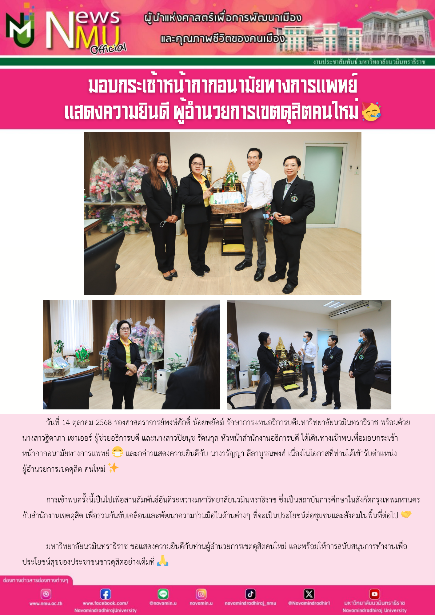มหาวิทยาลัยนวมินทราธิราช มอบกระเช้าหน้ากากอนามัยทางการแพทย์ แสดงความยินดี ผู้อำนวยการเขตดุสิตคนใหม่ 🥳