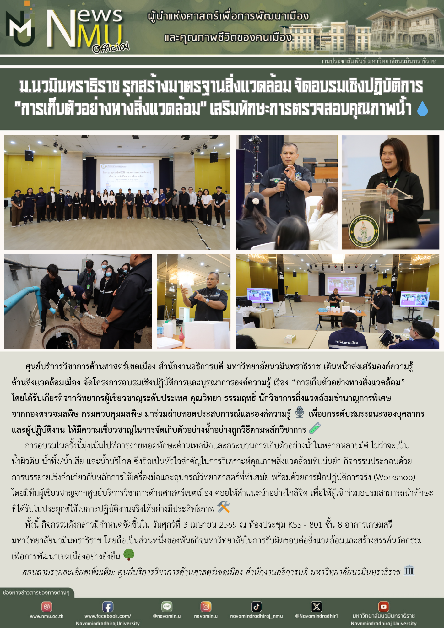 📢 ข่าวประชาสัมพันธ์: มหาวิทยาลัยนวมินทราธิราช รุกสร้างมาตรฐานสิ่งแวดล้อม จัดอบรมเชิงปฏิบัติการ "การเก็บตัวอย่างทางสิ่งแวดล้อม" เสริมทักษะการตรวจสอบคุณภาพน้ำ 💧