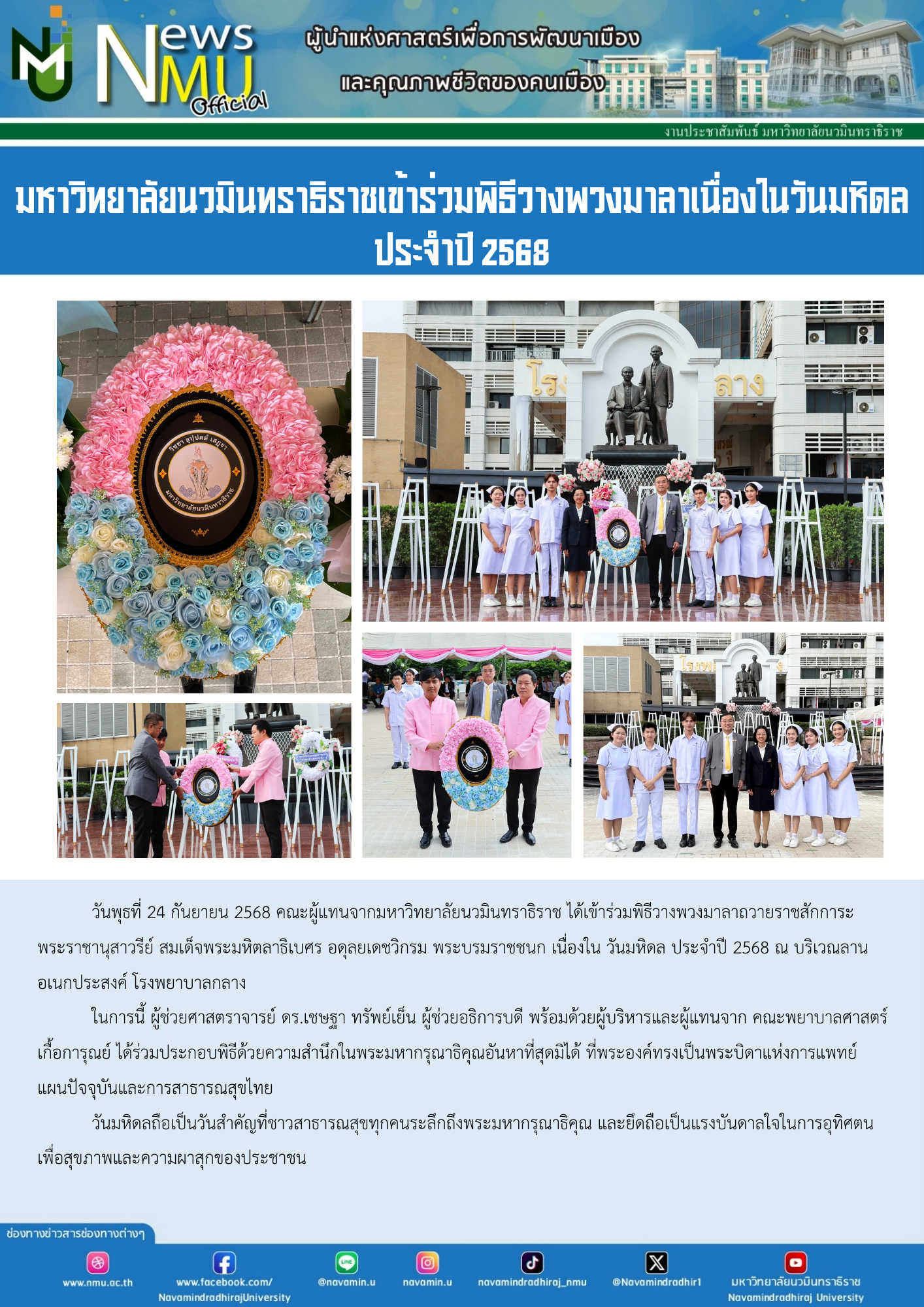 มหาวิทยาลัยนวมินทราธิราชเข้าร่วมพิธีวางพวงมาลาเนื่องในวันมหิดล ประจำปี 2568