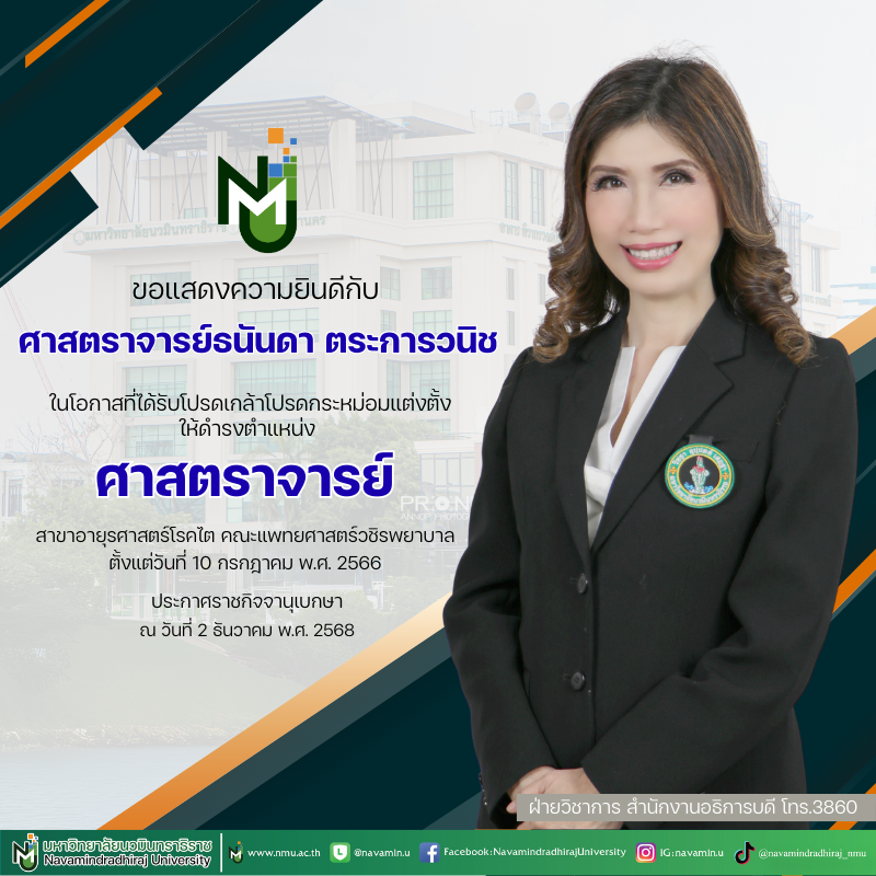 💐 มหาวิทยาลัยนวมินทราธิราช ขอแสดงความยินดีเป็นอย่างยิ่งกับ ศาสตราจารย์ธนันดา ตระการวนิช 👩⚕️✨ คณะแพทยศาสตร์วชิรพยาบาล 🏥