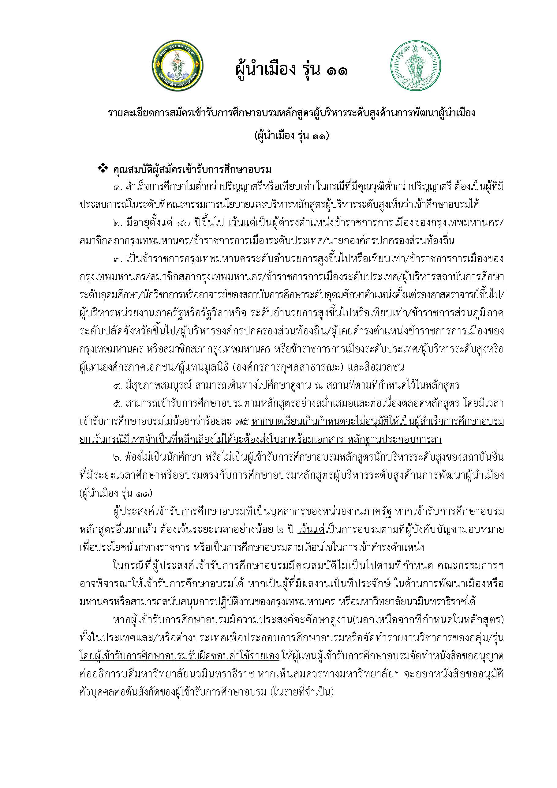 🏙️ประกาศรับสมัครบุคคลเข้ารับการคัดเลือกเพื่อศึกษาอบรมหลักสูตรผู้บริหารระดับสูงด้านการพัฒนาผู้นำเมือง (ผู้นำเมือง รุ่น 11)