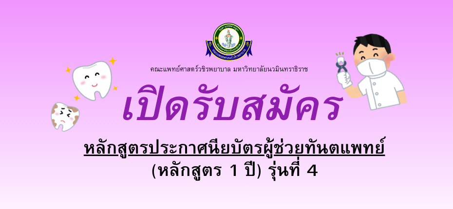 🦷 ประกาศรับสมัครและคัดเลือกบุคคลเข้าศึกษาหลักสูตรประกาศนียบัตร ผู้ช่วยทันตแพทย์ (หลักสูตร 1 ปี) รุ่นที่ 4 ประจำปีการศึกษา 2569🏥